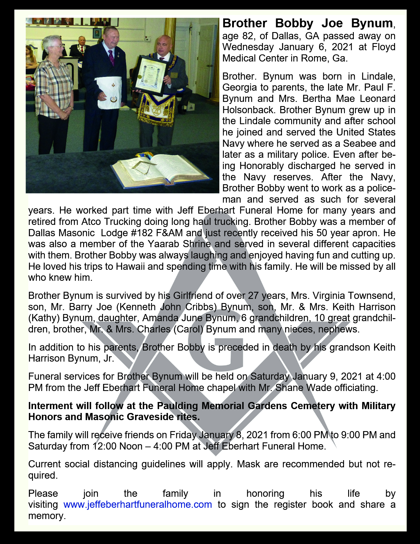WORSHIPFUL BROTHER BOBBY WALRAVEN...