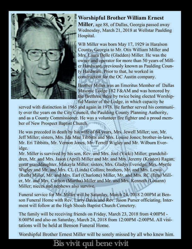 WORSHIPFUL BROTHER ERNEST MILLER...